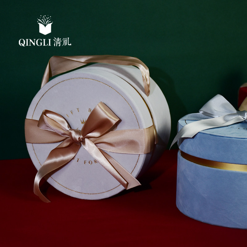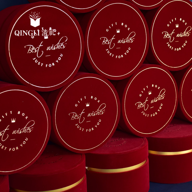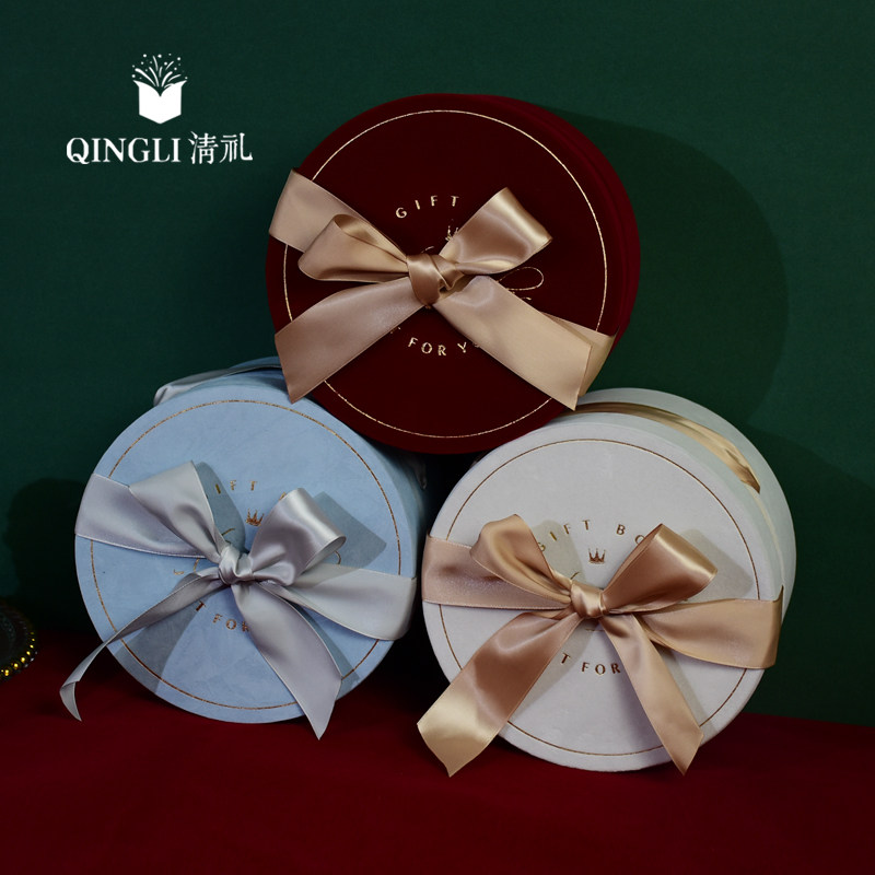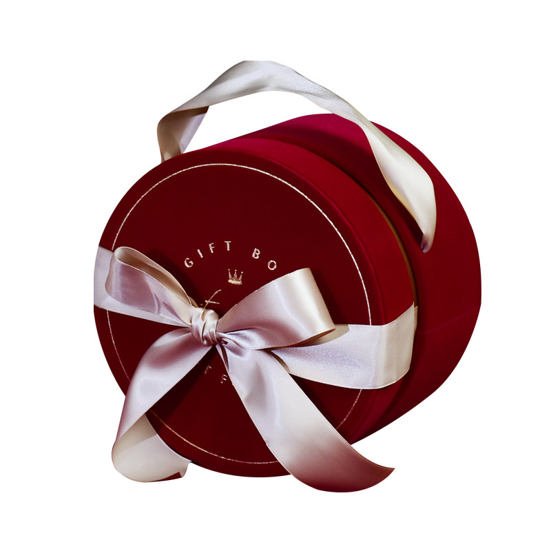 Round gift box velvet cloth wedding souvenir bridesmaid gift box birthday full moon engagement INS red empty box