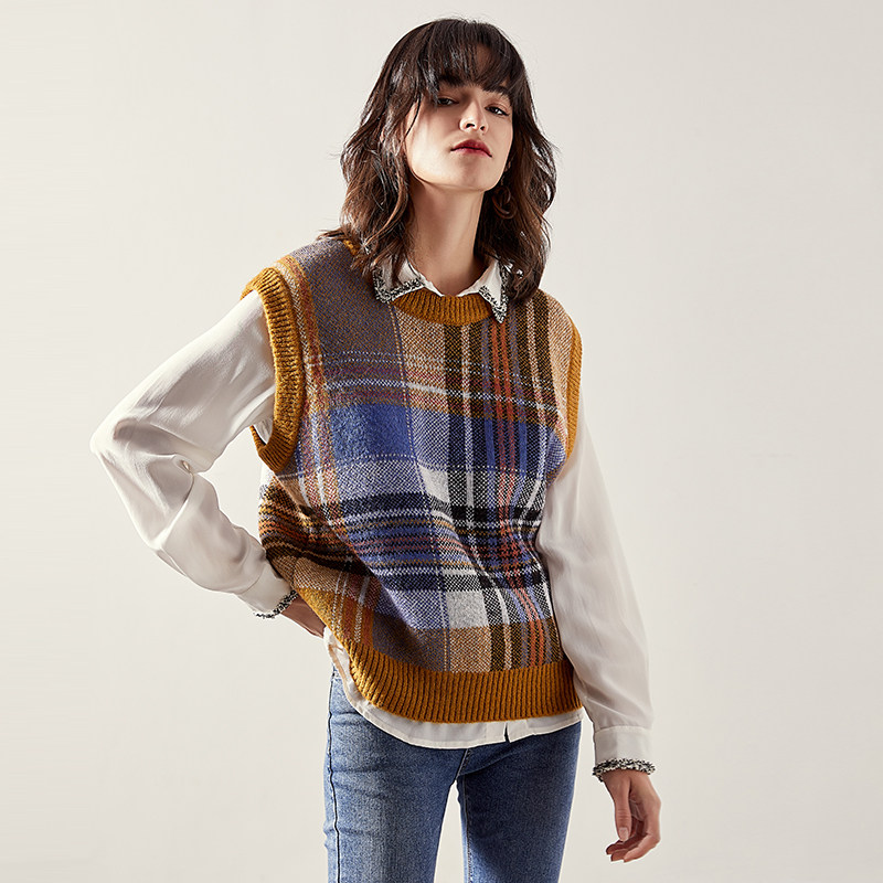GDZY wool jacquard sweater vest contrast color knitted vest 2021 new women's spring and autumn outer wear waistcoat vest