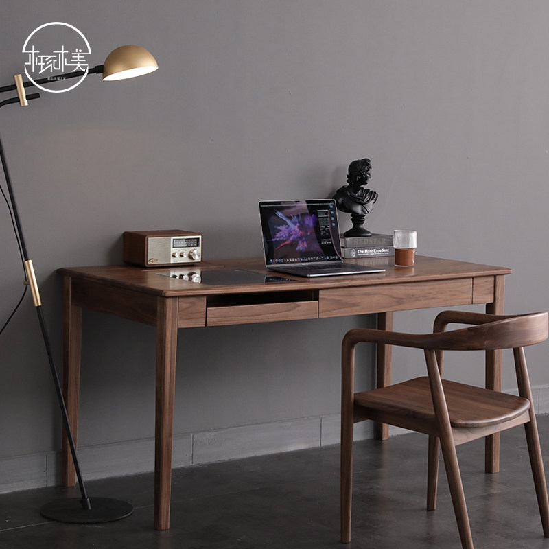 Nordic light luxury black walnut solid wood desk 1 5 meters study desk desk computer desk modern minimalist