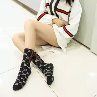 Letter trembles explosive street trend ins Net red socks Super fire female Korean version of middle tube Harajuku sports cotton socks