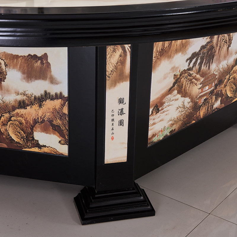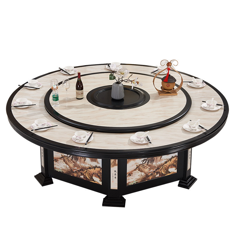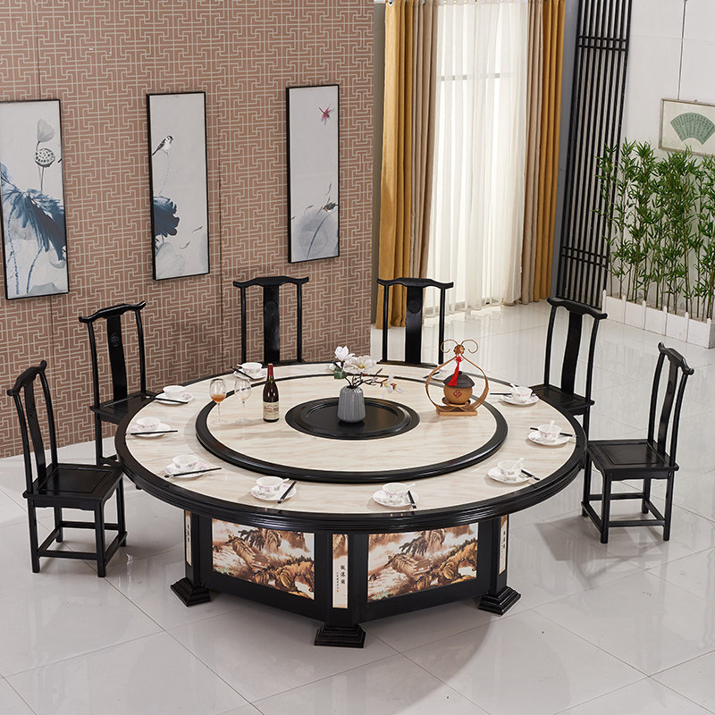 New Chinese Hotel Manual Electric Solid Wood Dining Table Big Round Table Hotel 15 20 people bag Hot Pot Chairs Combo