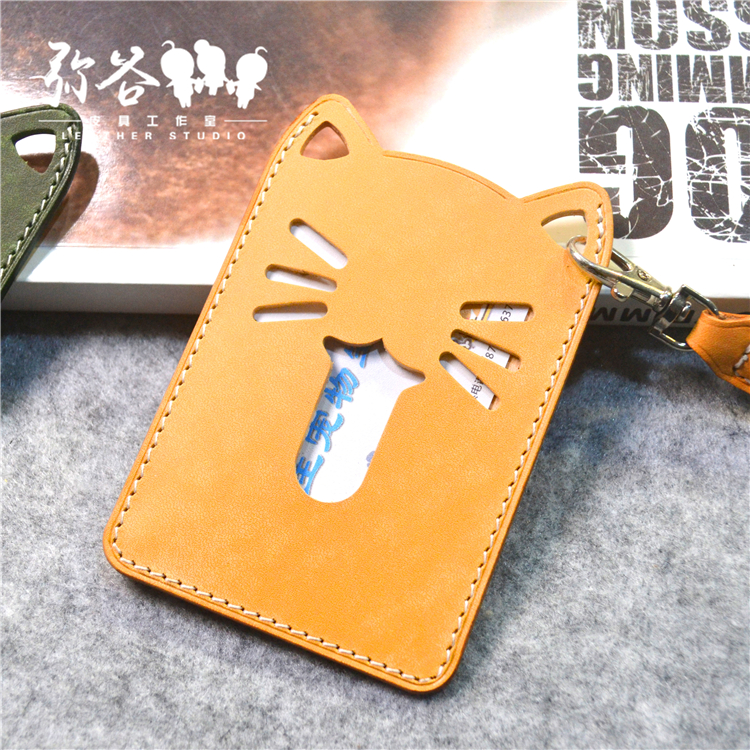 Migu Handmade Real Pickup Head Layer Cow Leather Cute Katong Card Bag Bus Card Subway Card Hanging Rope Real Leather Cover