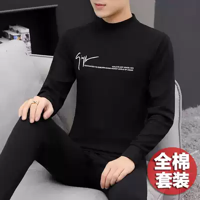 Cotton spring and autumn thin semi-high collar long sleeve inner clothing youth middle collar autumn suit set of hot clothes