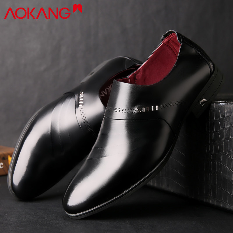 Aokang men's 2022 new autumn business casual leather shoes men's Korean version of the formal dress leather breathable trend men's leather shoes