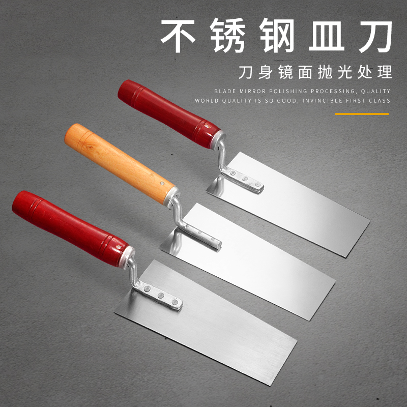 Qinggang wood riveted plastering knife red manganese steel riveted plastering knife small wooden handle mud board with handle medium wooden handle mud board with handle large wooden handle mud board with red handle stainless steel riveted plastering knife