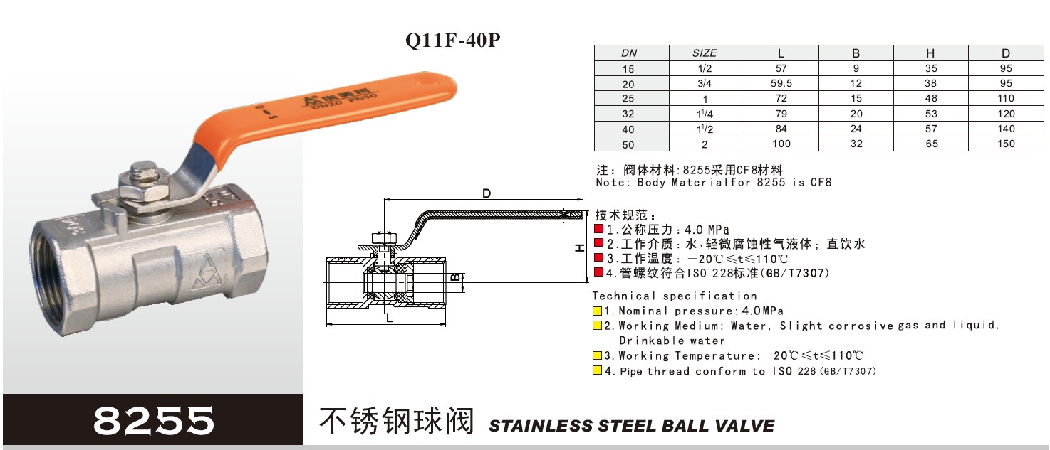 Ball type Emmeto 304 stainless steel ball valve 8255 thickens one pipe switch valve DN15 - 50
