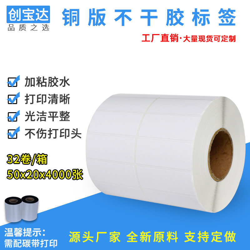 Self-adhesive label coated paper 50x20x4000 coated label paper plus sticker barcode sticker