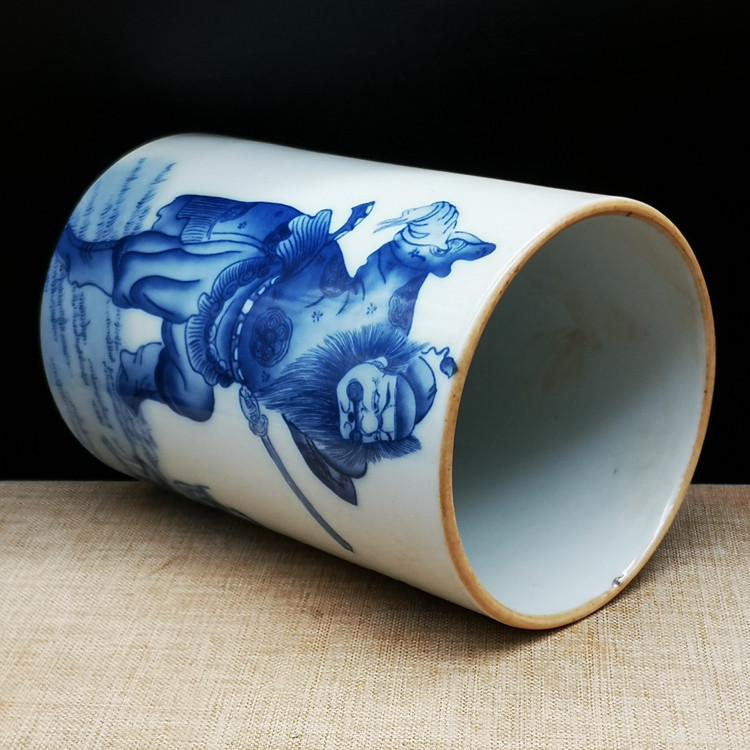 Late Qing imperial Republic of China Qinghua Zhong Kuei Grasping Ghost Pen Holder Ancient Play Porcelain Antique Old Objects Townhouse Mansion House Instrumental Ancient Wind Swing Piece-Taobao
