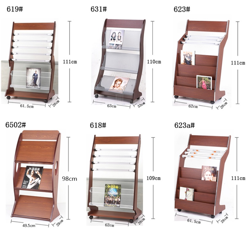 Xing creative magazine rack Book and newspaper rack Newspaper shelf rack Wooden newspaper clip floor-to-ceiling simple information to get newspapers