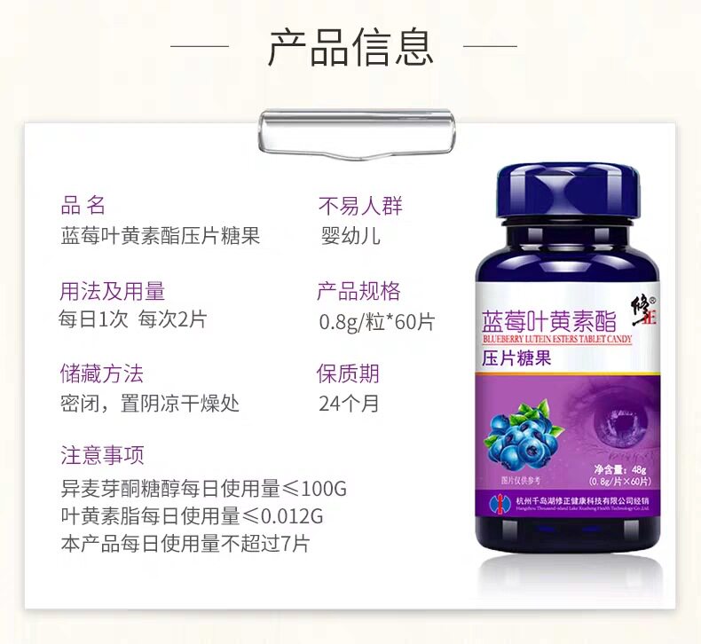 Blueberry lutein fat tablets students and children lutein fat tablets 60 pieces children paste correction