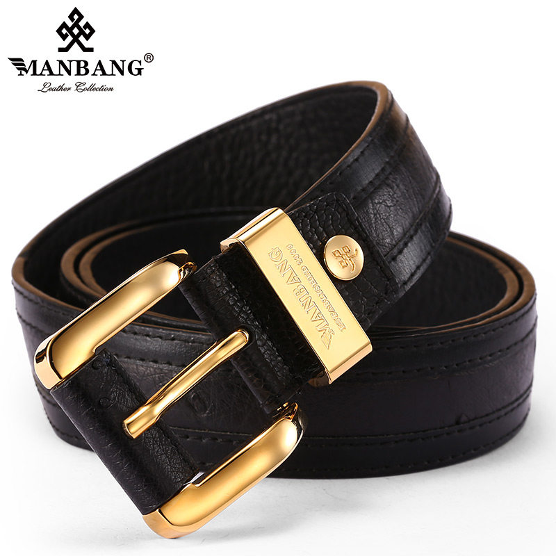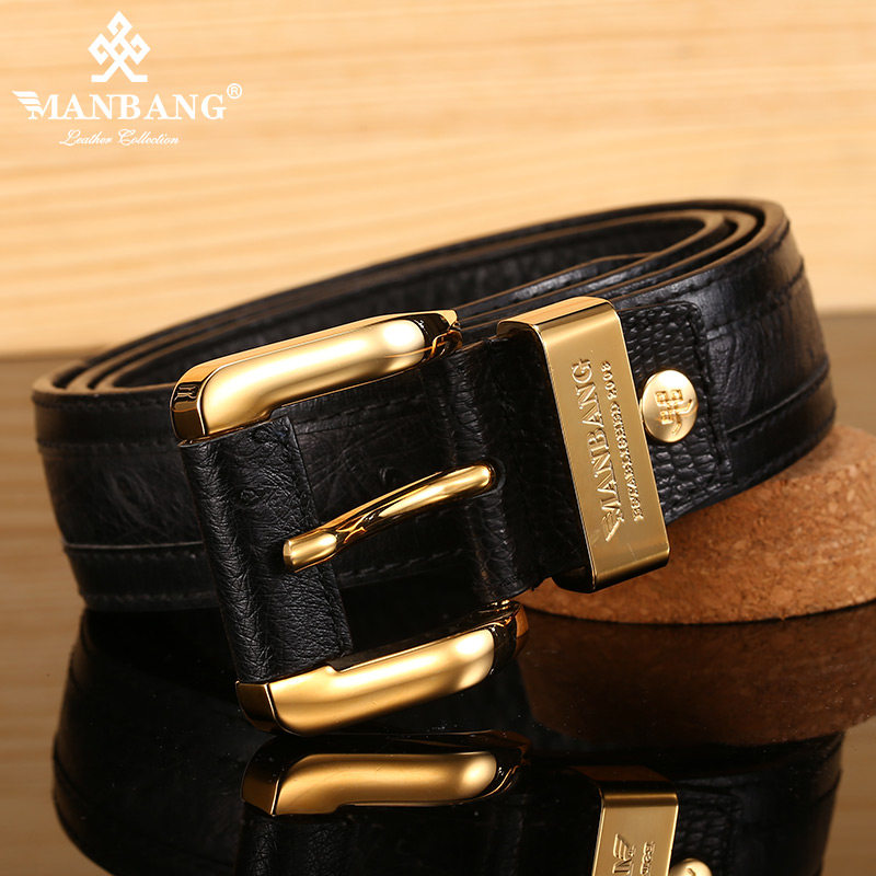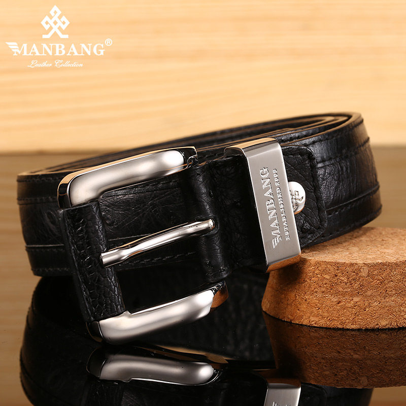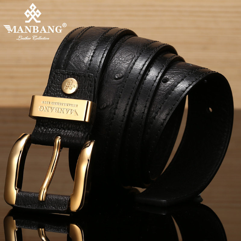 Manbang Ostrich Bird Leather Men Leather Strap Copper needle buckle upscale Leather Belt Tide Men Casual Middle-aged Men's Pants Strap