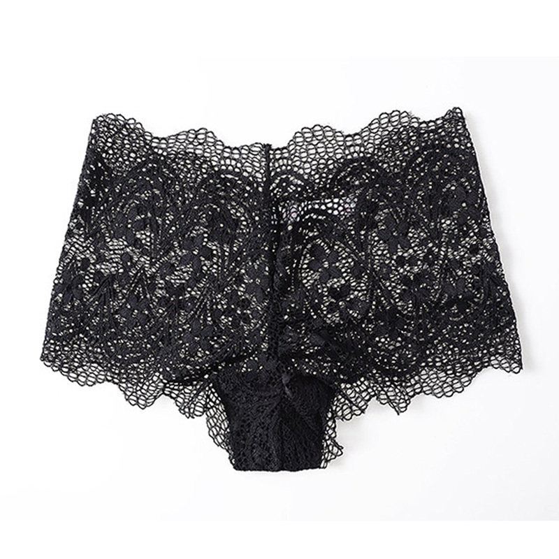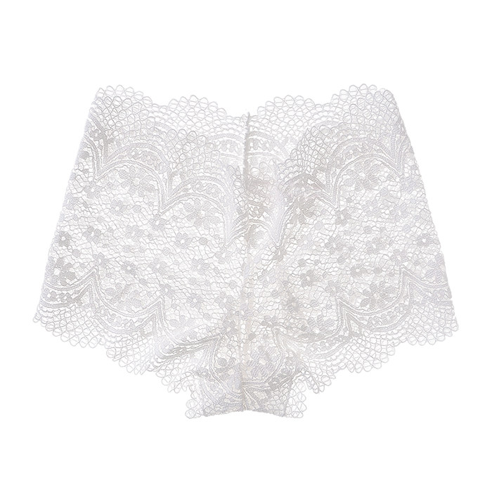 European and American sexy lace hollowed-out low-waist boxer panties white seamless half-pack hip transparent panties briefs women