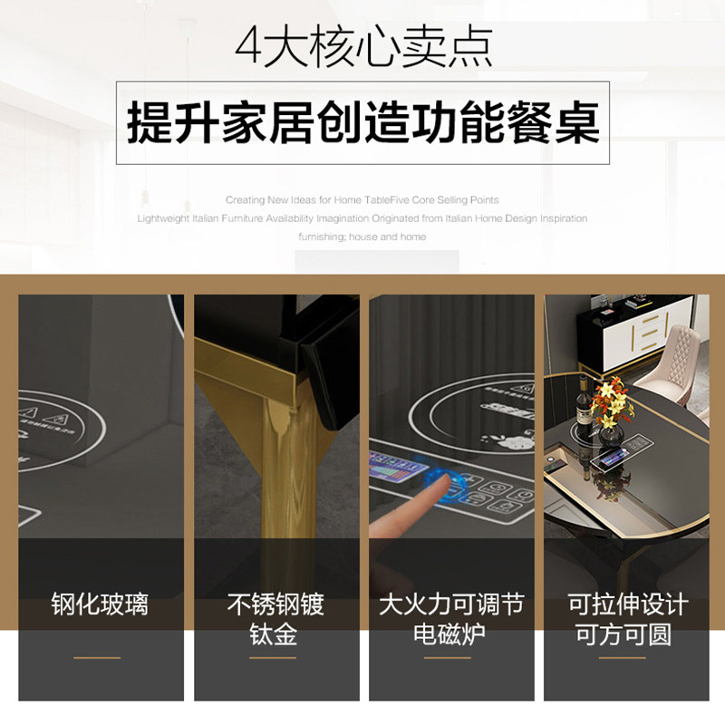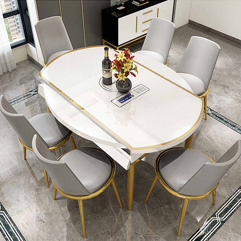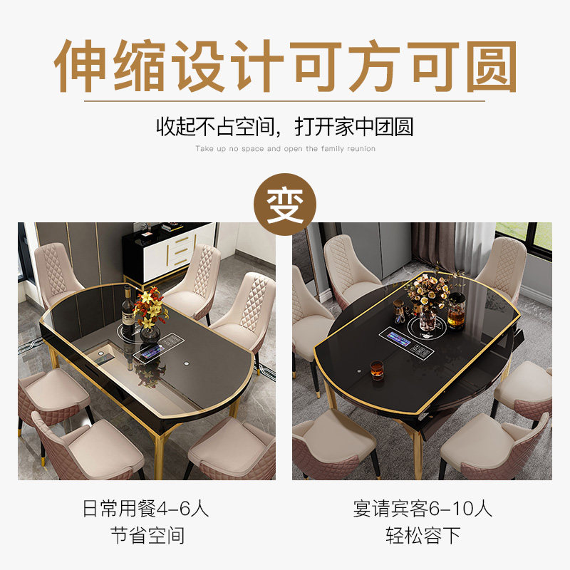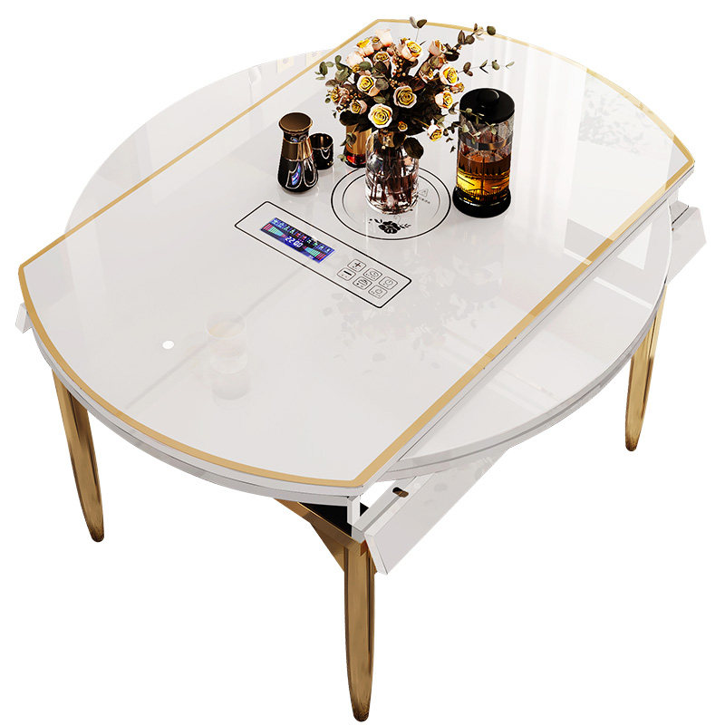 Folding table with induction stove Modern simple household dining table Variable round table Light luxury dining table Multi-functional small apartment type