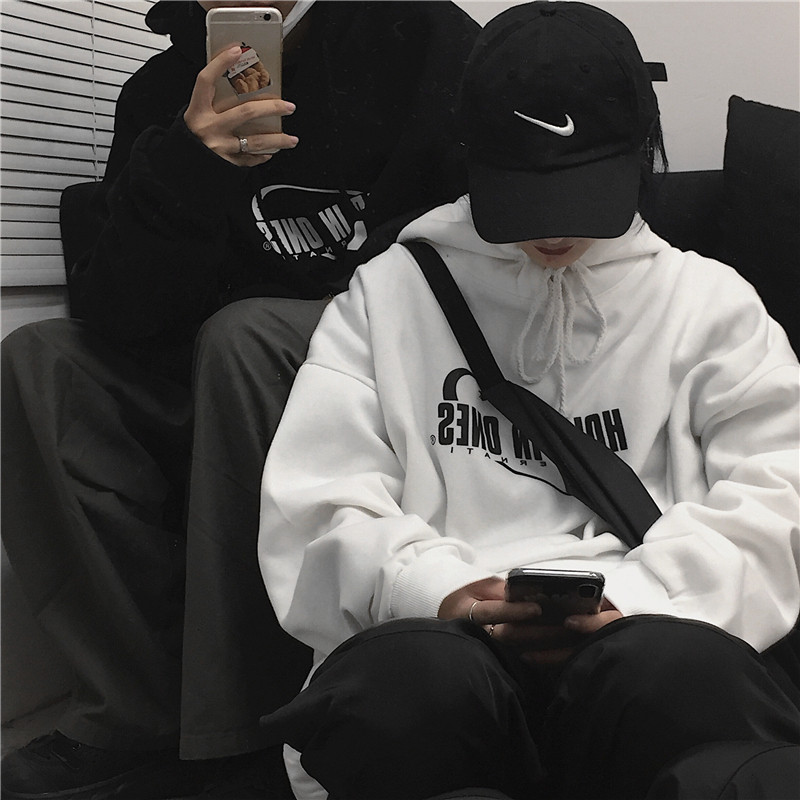 2021 autumn and winter clothing new Korean version of the student retro simple letter printing hooded velvet sweater men and women ins tide