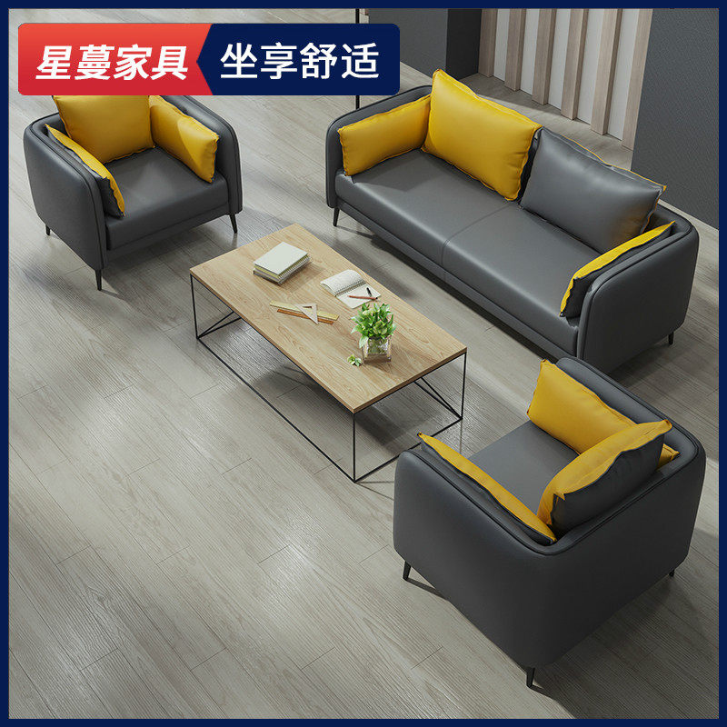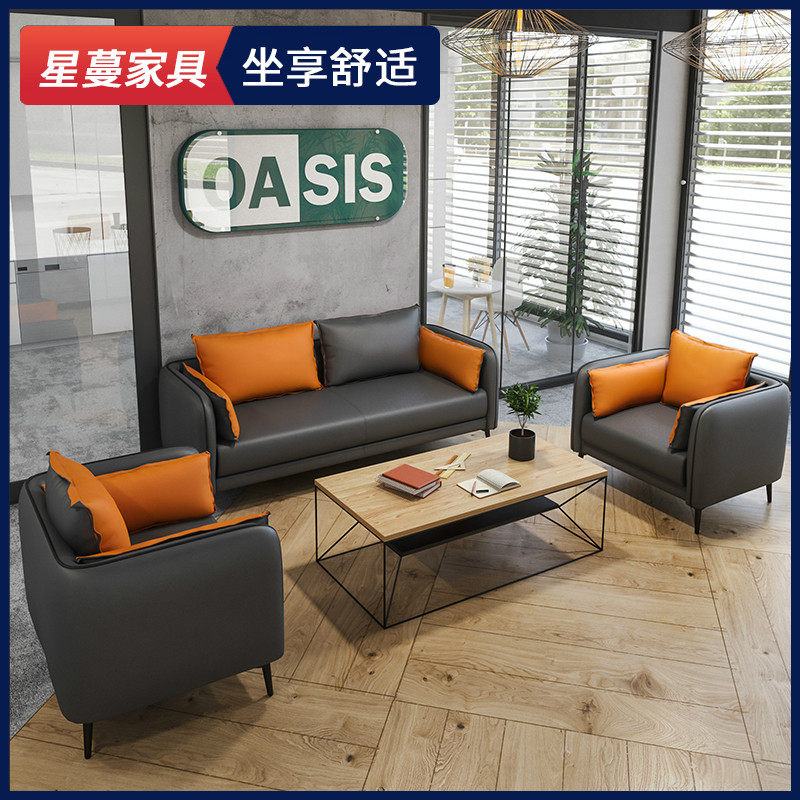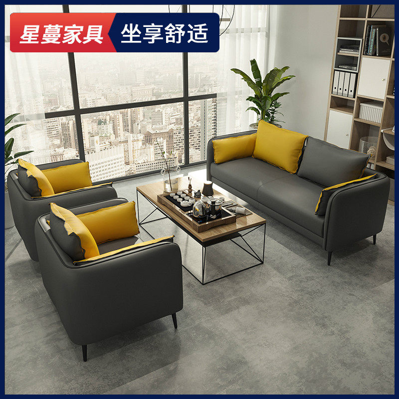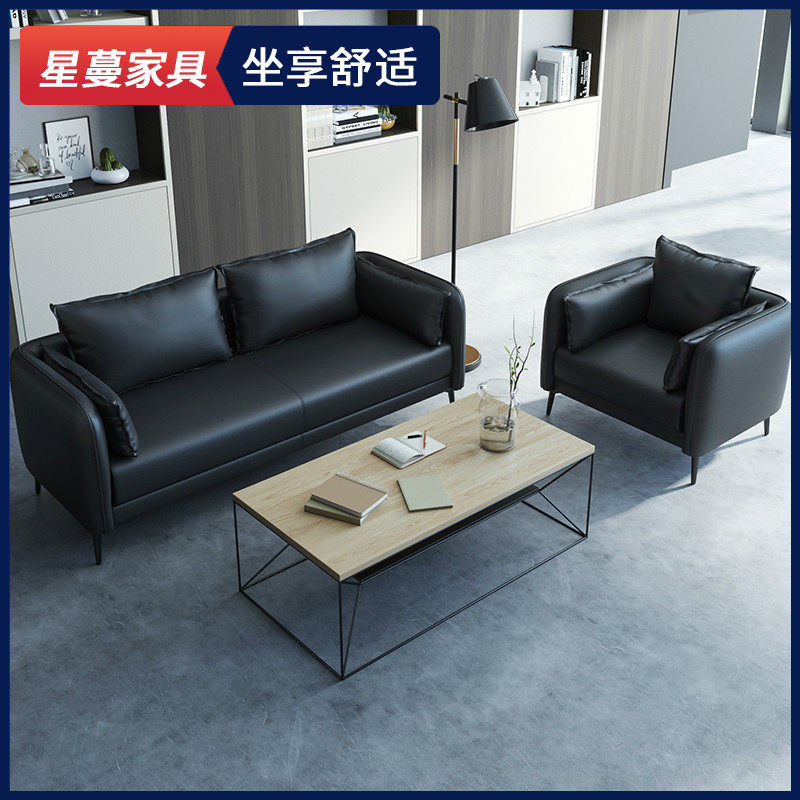 Office sofa leather simple modern business reception and guest leisure office sofa coffee table combination three people