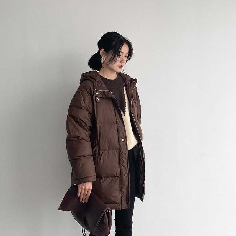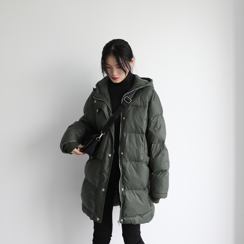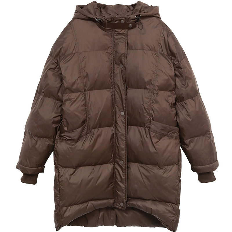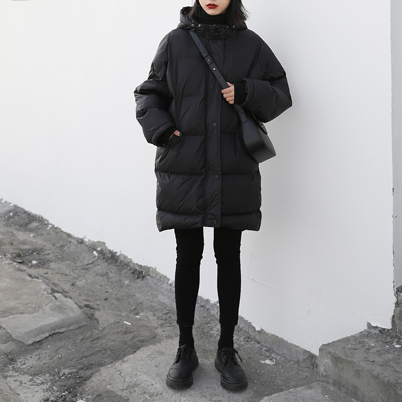 CHICVEN autumn and winter new solid color hooded cotton jacket retro simple loose medium and long version of the quilted jacket for women