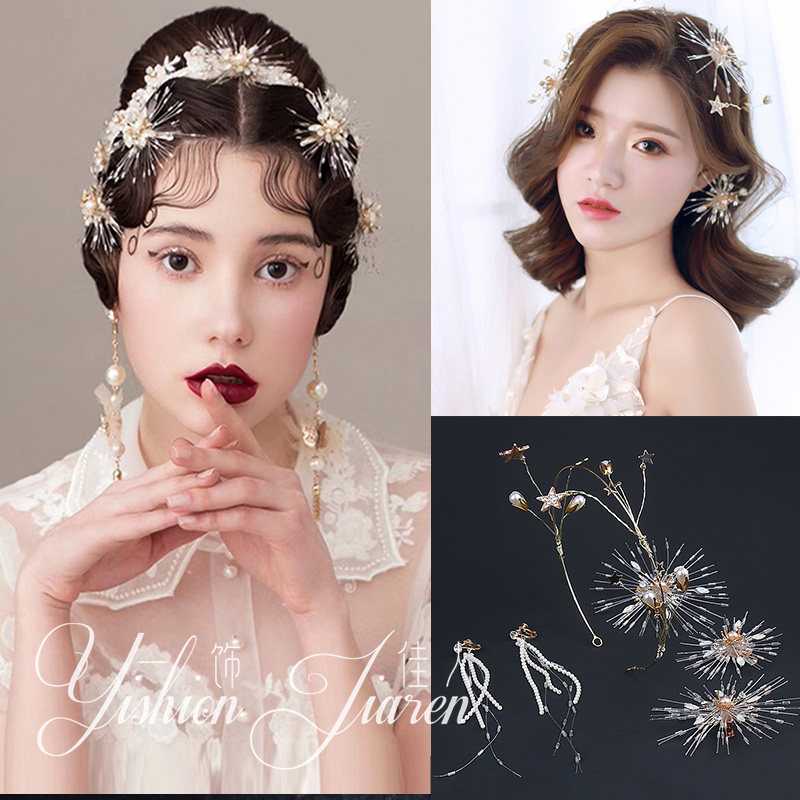 2019 New Bridal Headwear handmade Beads Hair Accessories Stars Hair Stirrup Pearl Streaming Suhair Clip Wedding Dresses Accessories