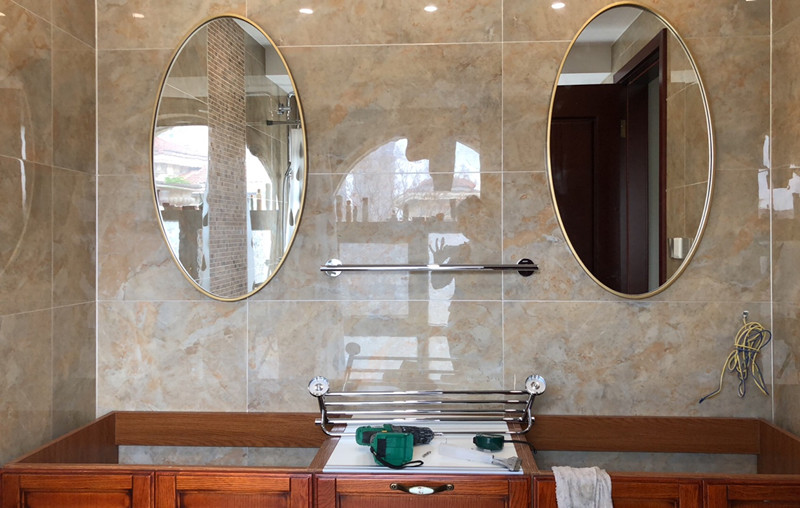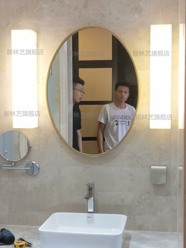 Champagne gold oval mirror Wall-mounted oval mirror Living room decorative mirror Makeup mirror Powder room bathroom mirror Entrance mirror
