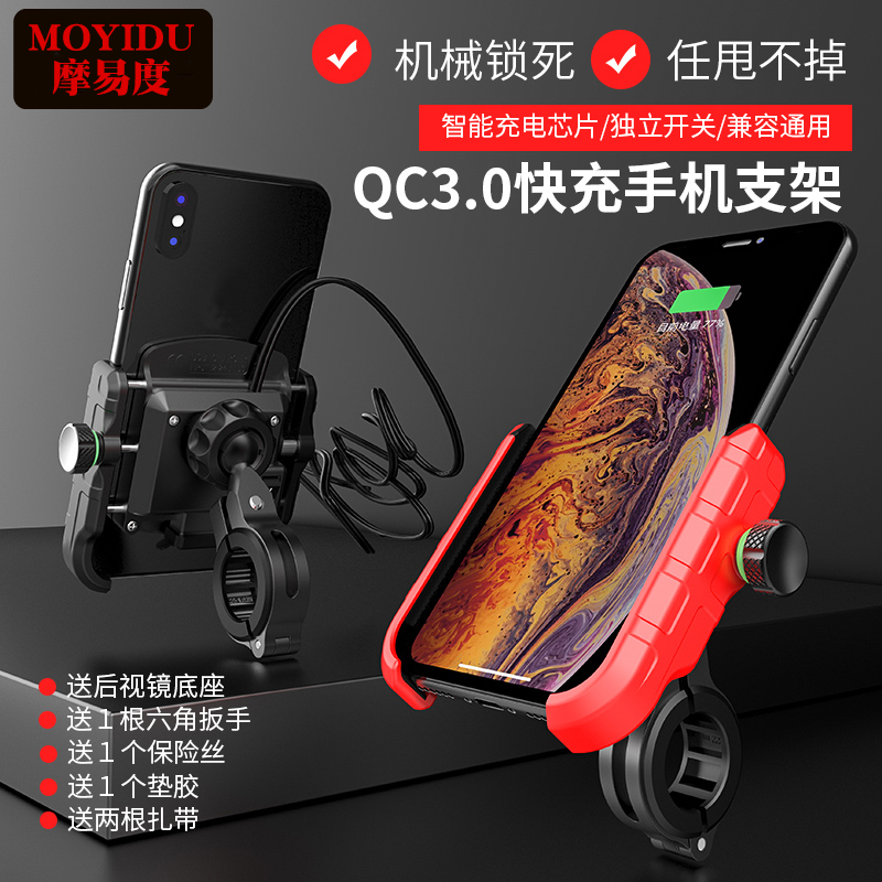 Aluminum alloy locomotive electric vehicle charger car mobile phone holder 2 5A charging usb with switch 12-24V waterproof