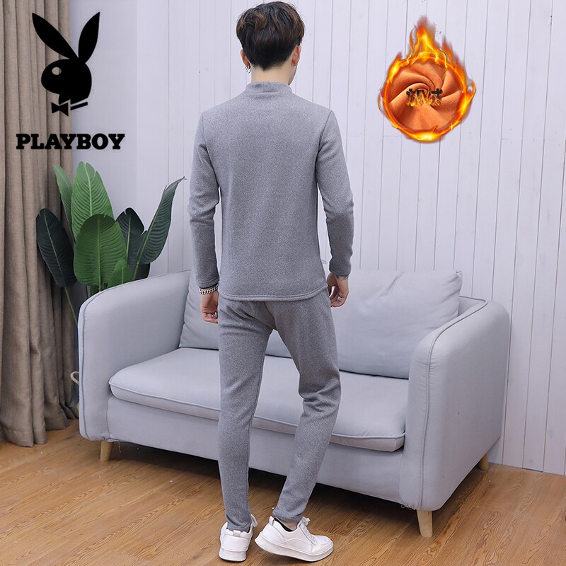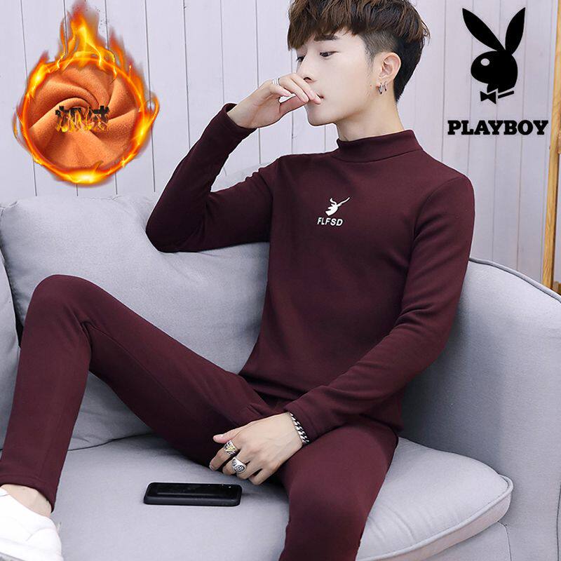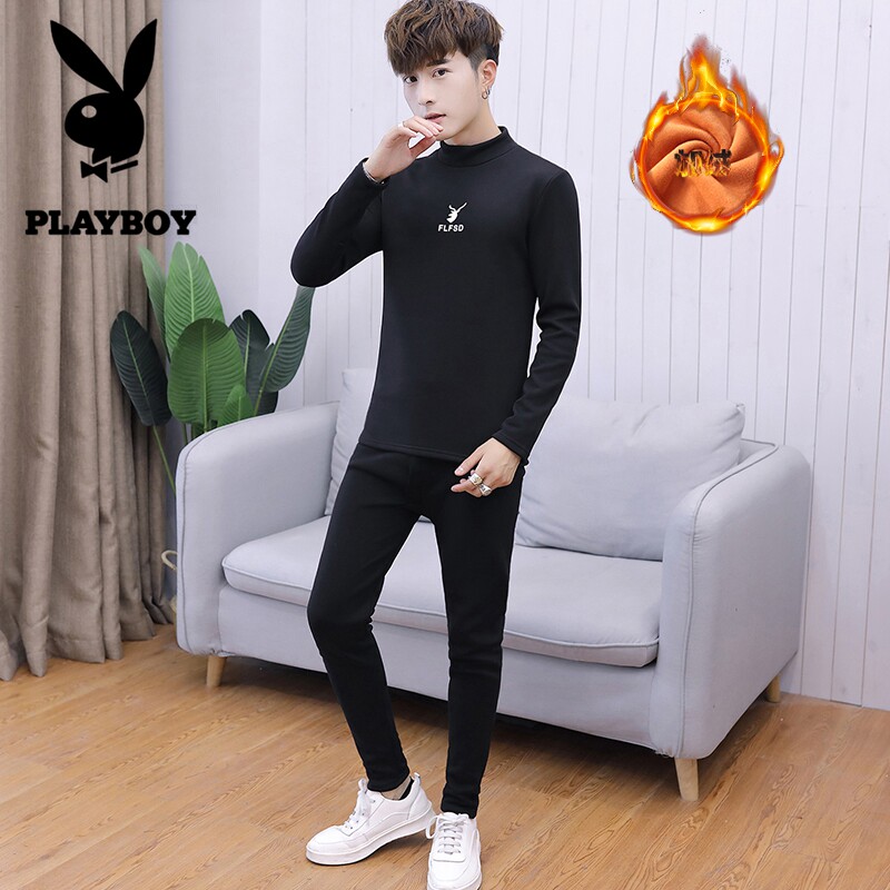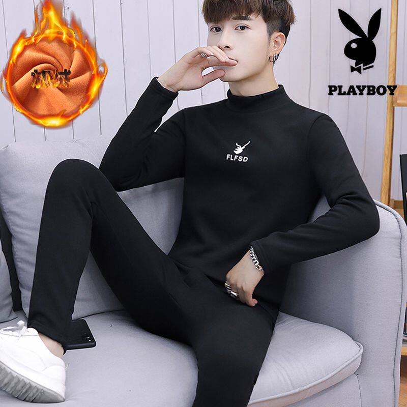 Playboy teen hot pants men's winter students plus velvet thick autumn clothes sanitary pants half turtleneck