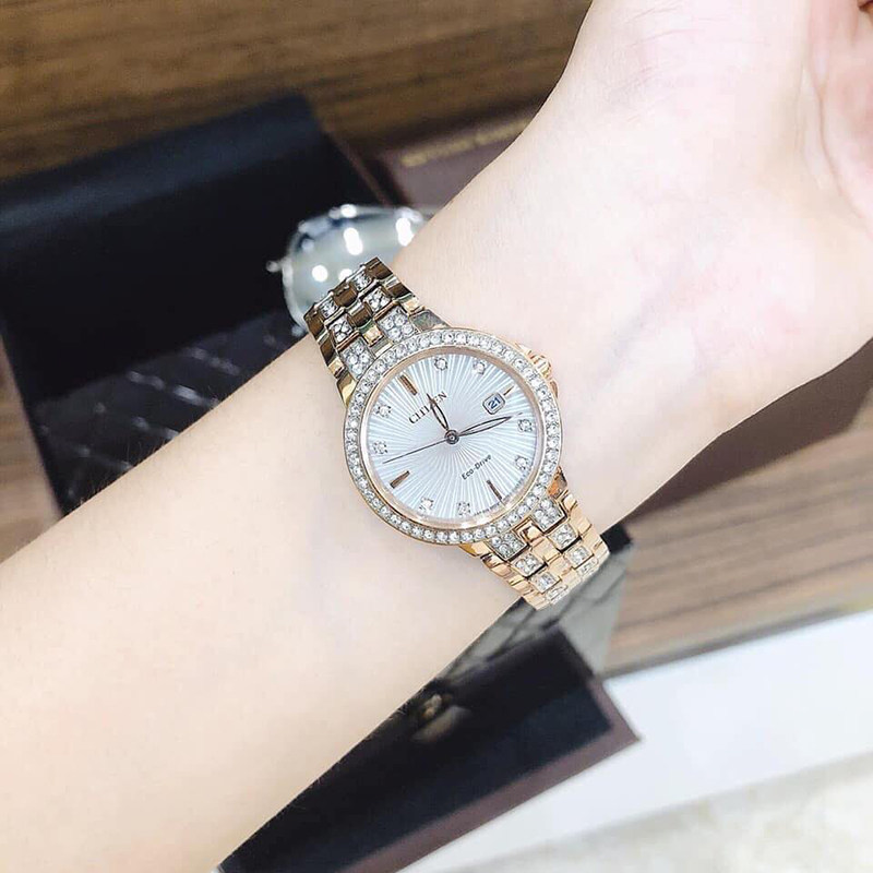 West Railway City Women's Table Citizen EW2340-58A Crystal inlaid with threaded dial light Kinetic Fashion Watch-Taobao