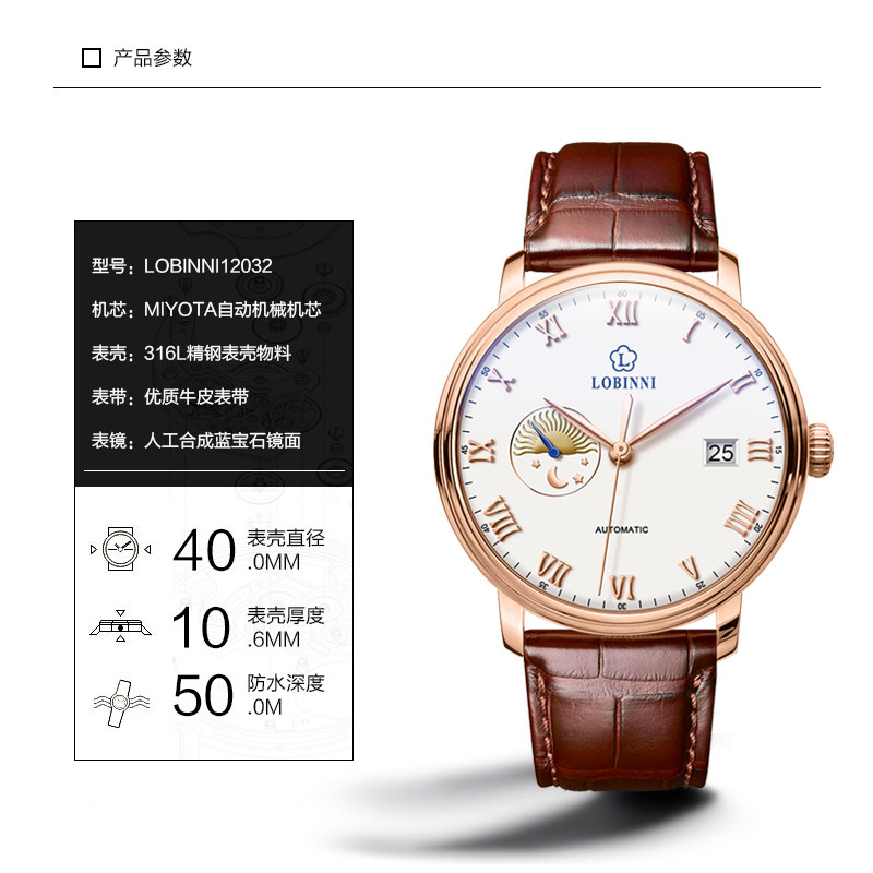 Robin Ney Brand Hand Watch Men's Fully Automatic Mechanical Dermis