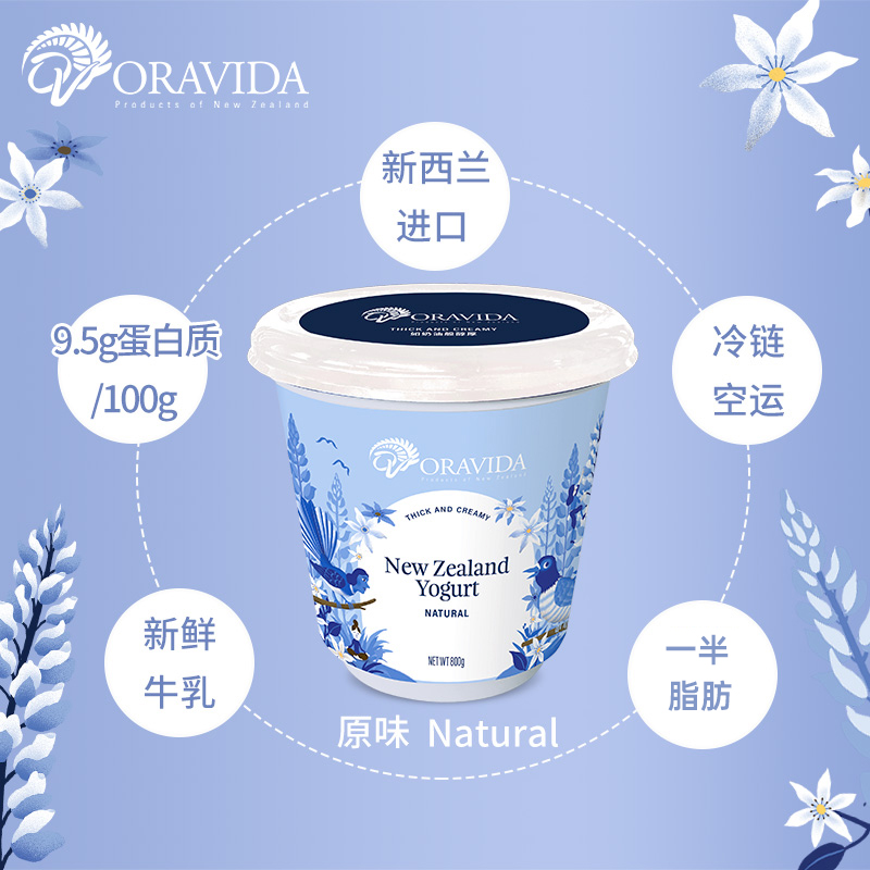 oravida Lanvile New Zealand imported low temperature plain yogurt 800g*2 boxes