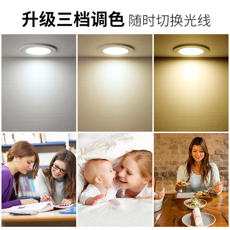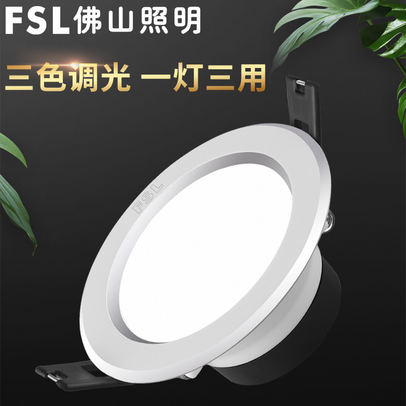 Foshan lighting three-colour light-changing LED cylinder light ultra-thin embedded 7 5 cm ceiling hole light Living room ceiling hole lamp