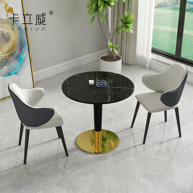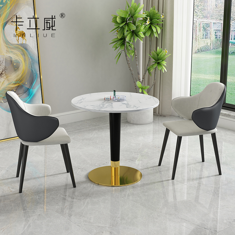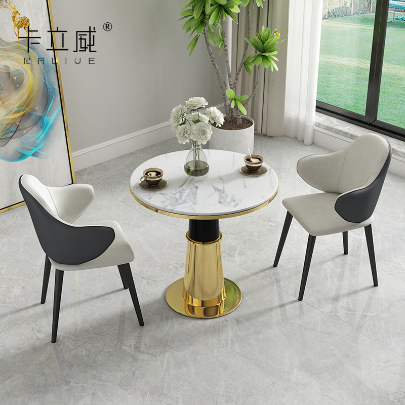 Italian light luxury sample house display center negotiation table marble stainless steel milk tea table hotel round table modern minimalist coffee table