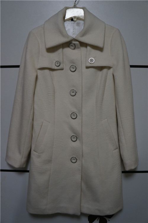 TH Women's Winter Single Breasted White Long Slim Fit Wool Coat Wearable Belt Wool Coat