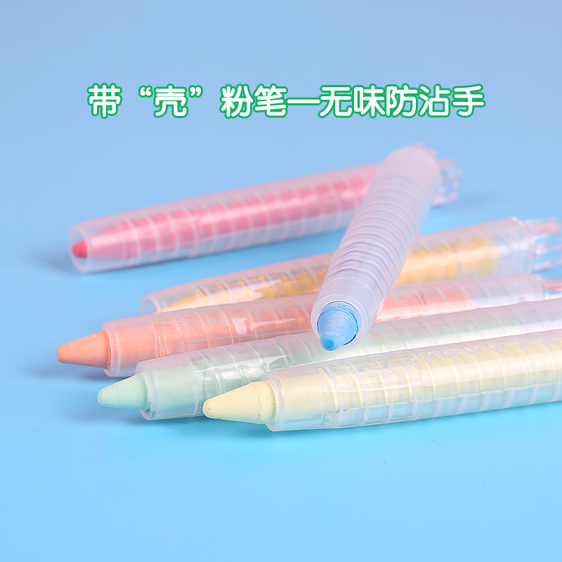 Dust-free chalk with pen cover for children's household solid water-soluble color chalk kindergarten school students non-toxic and environmentally friendly washable teachers use green board blackboard newspaper white painting graffiti chalk holder