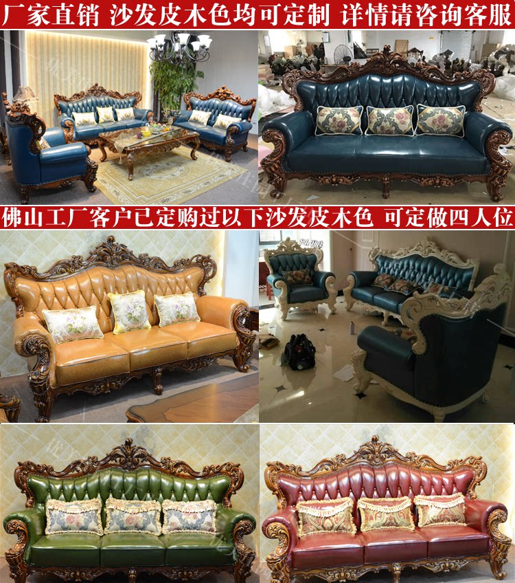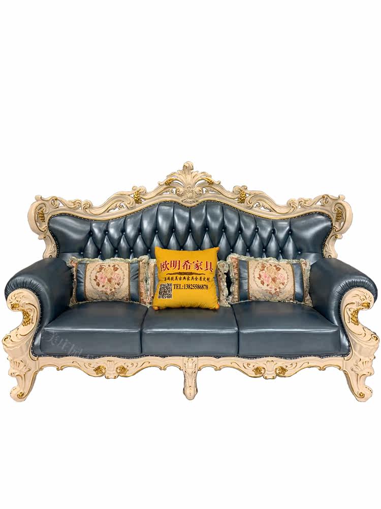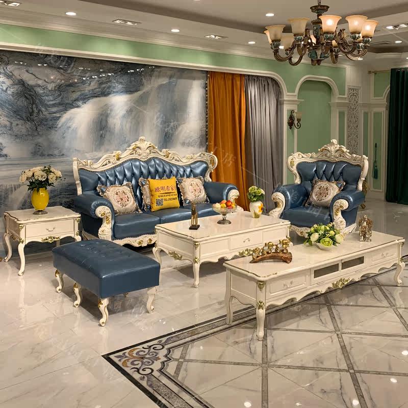 European-style leather sofa living room combination American-style solid wood sofa three-person small apartment luxury villa luxury furniture