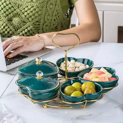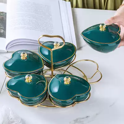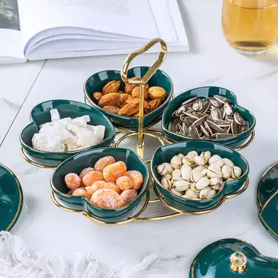 Malachite green iron frame love five-grid plate (without lid) malachite green one five-grid dried fruit plate (wyg998-1) malachite green moon cake shaped with lid dry fruit plate (wyg3141