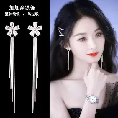 Earrings 2021 New Tide hypoallergenic Korean long version of temperament tassel Net red ear needle female sterling silver light luxury earrings