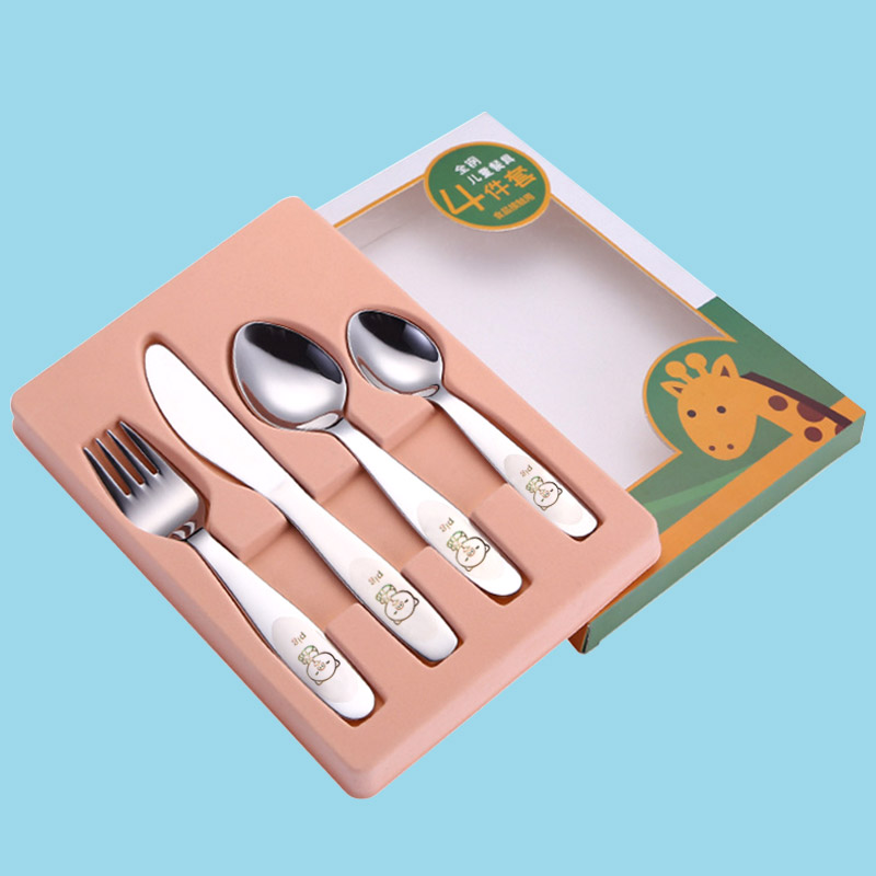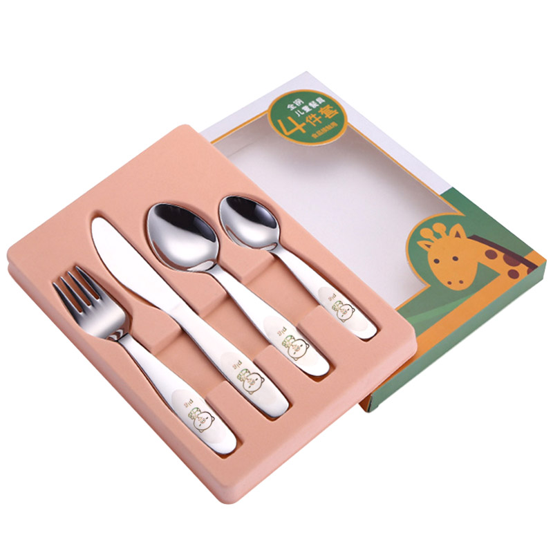 Four-piece sets of children's tableware Stainless steel plate (knife fork spoon chopsticks) (knife fork spoon chopsticks)