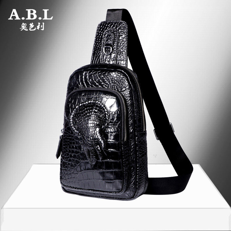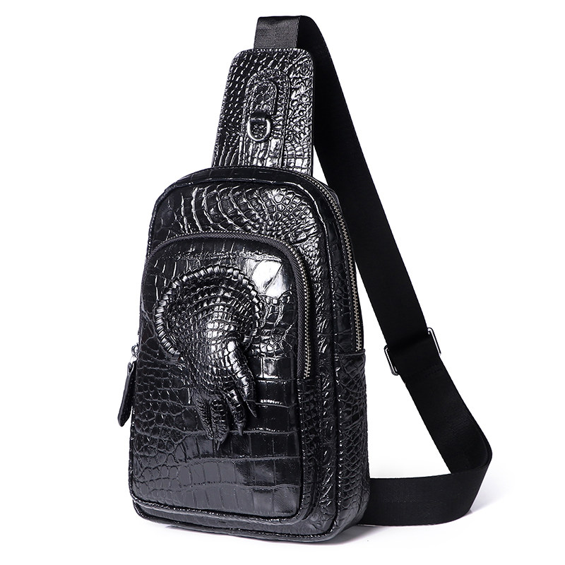 High-end crocodile chest bag for men genuine leather Damp Satchel Bag Black Satchel Bag single shoulder bag Inclined Satchel Bag front bag