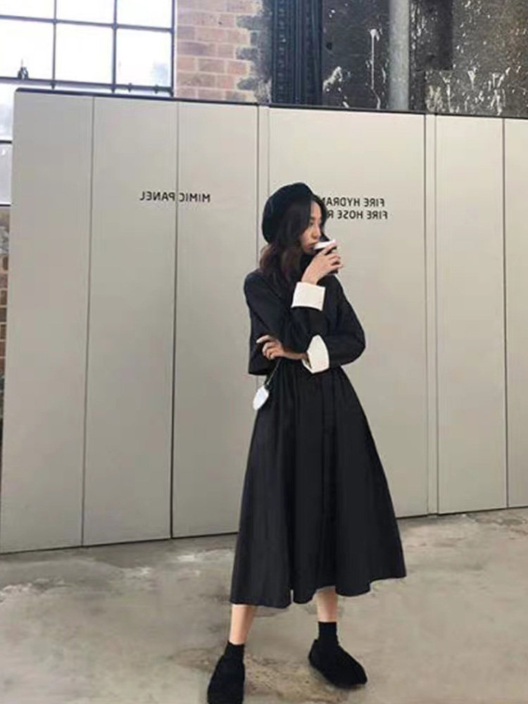 Small French medium - long - edited almond long sleeve with a dress - up high - sentence dress in autumn 2022 new style