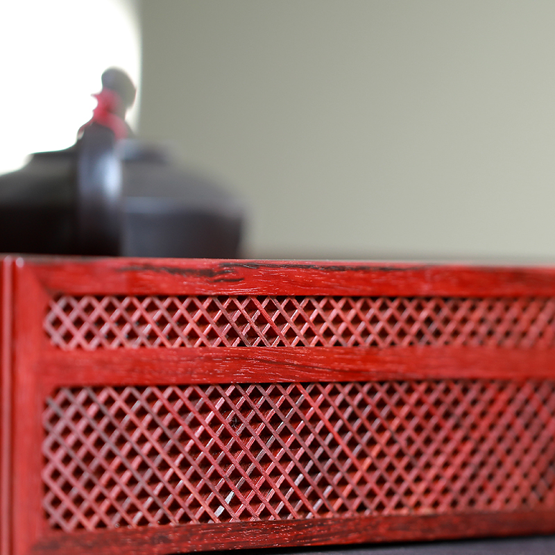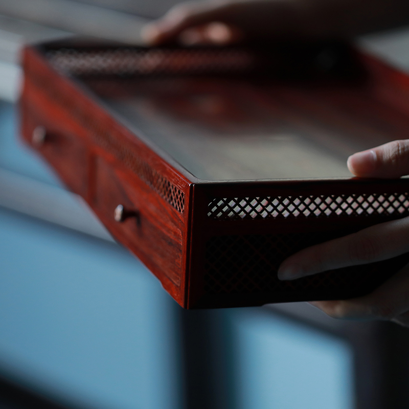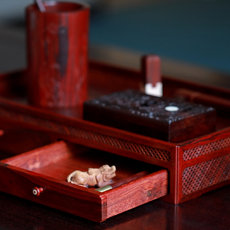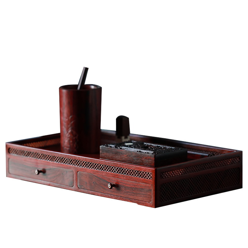 Small leaf red sandalwood square ling series bearing tray home tea tray stationery supplies tenon and mortise wood carving writing play craft gift decoration tea cup holder