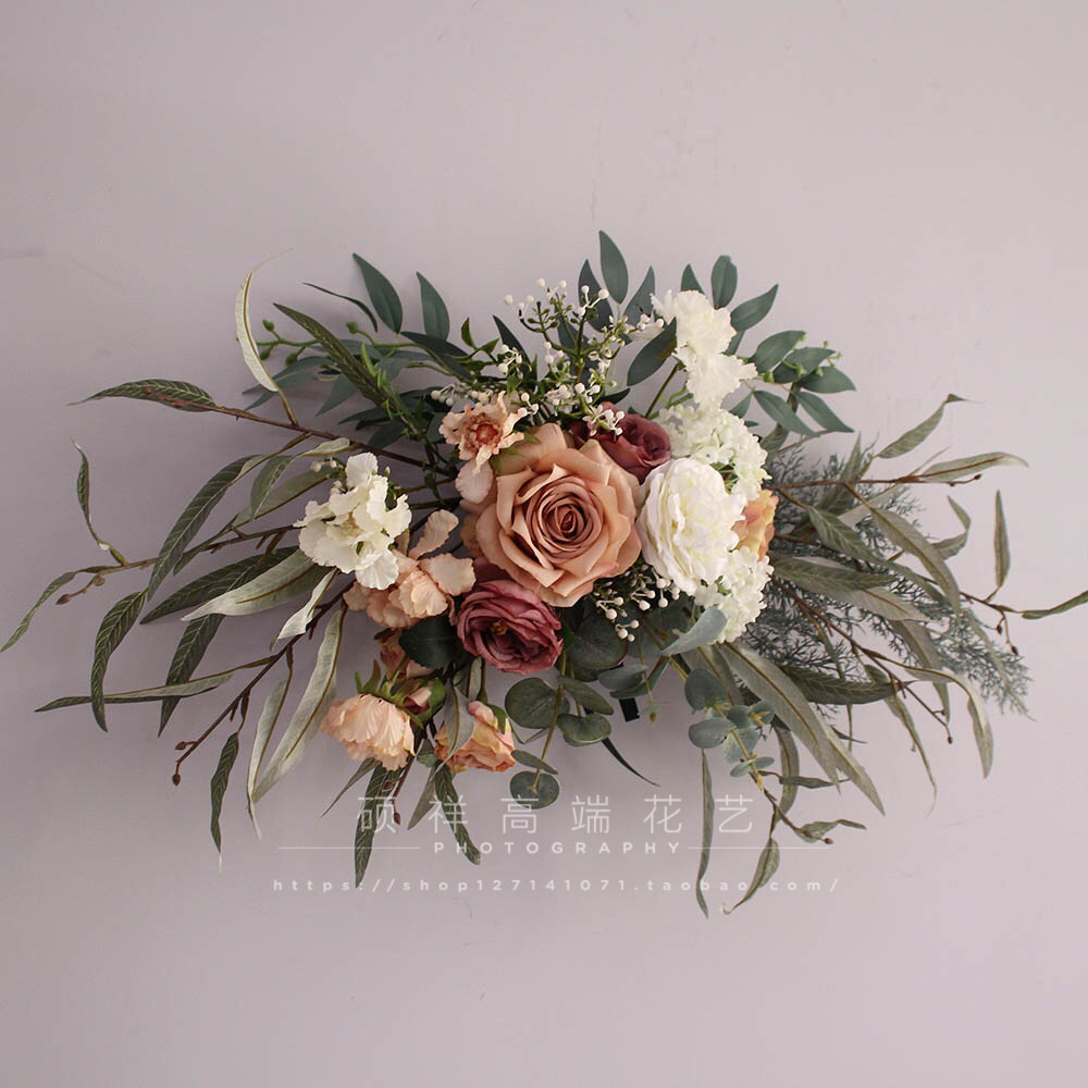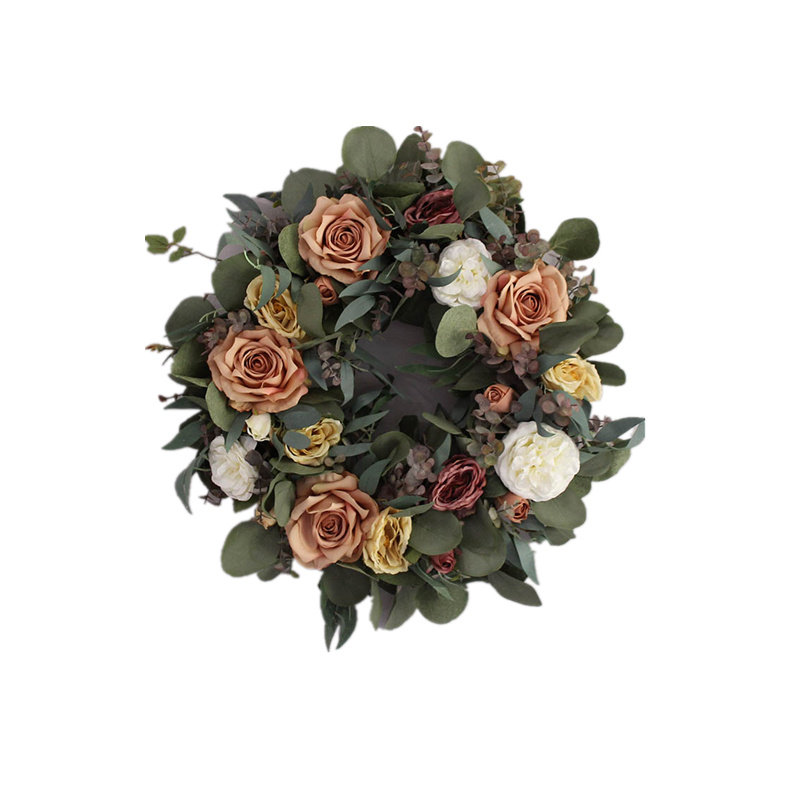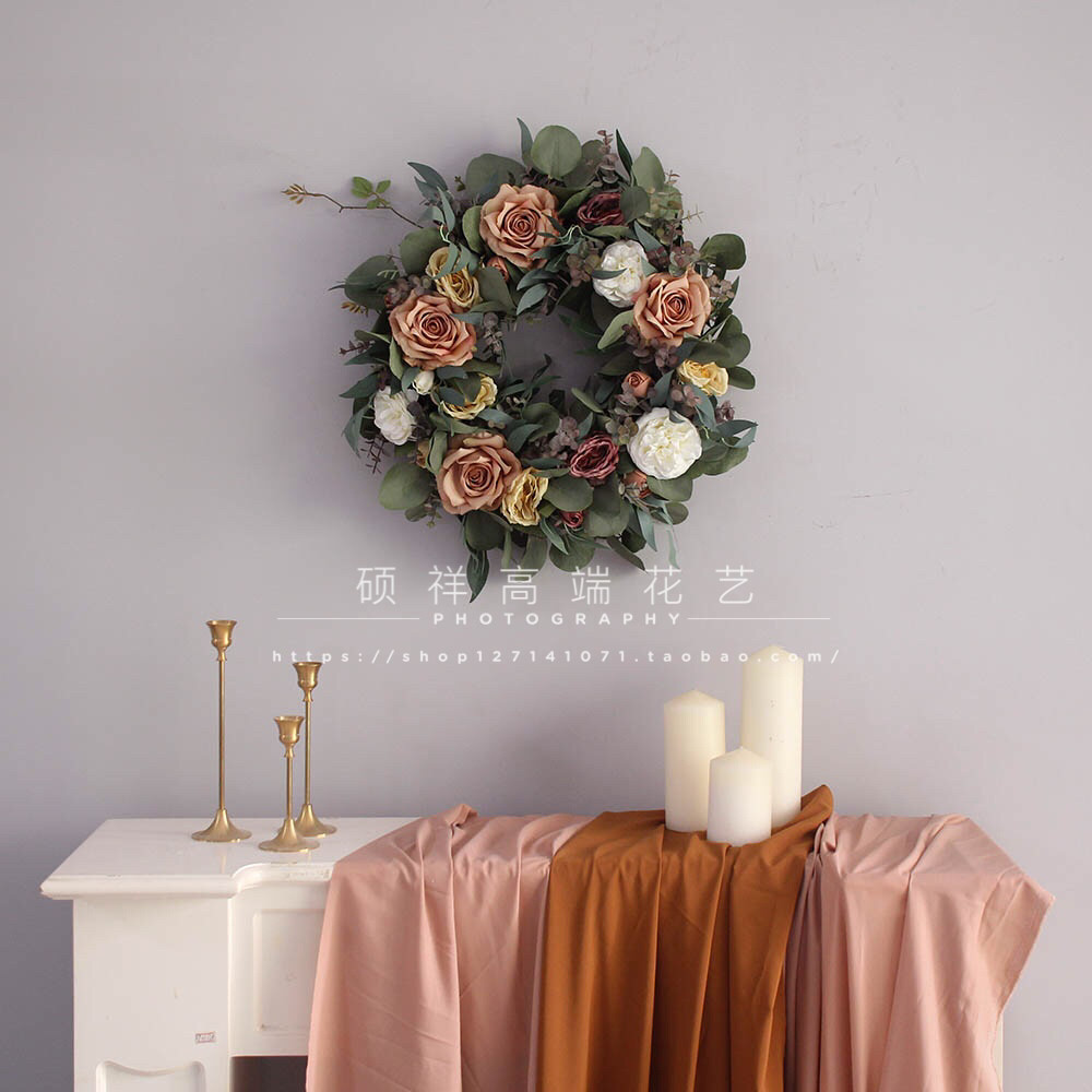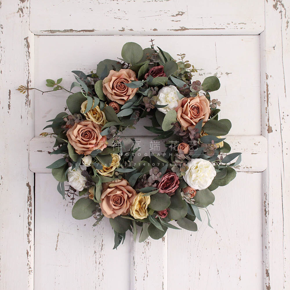 Simulation Rose Flower Ring Door Decorated Wall Decoration Creative Wall-mounted Living-room Wall Swing Piece Wedding Decoration Morandi Hue