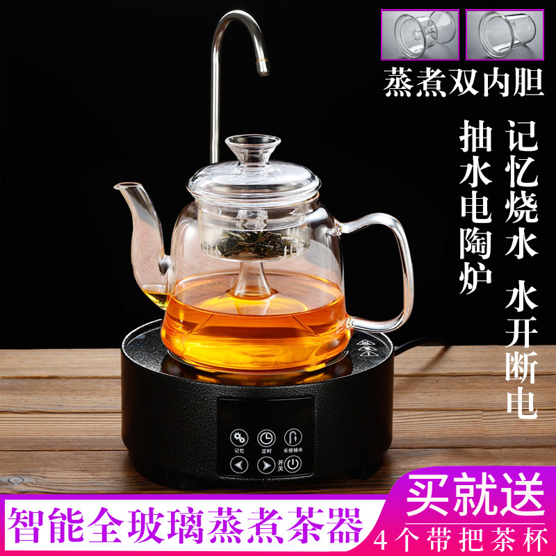 Fully automatic with pumped electric pottery stove cooking tea machine full glass steaming tea boiling teapot high temperature resistant steam boiling water pot tea set