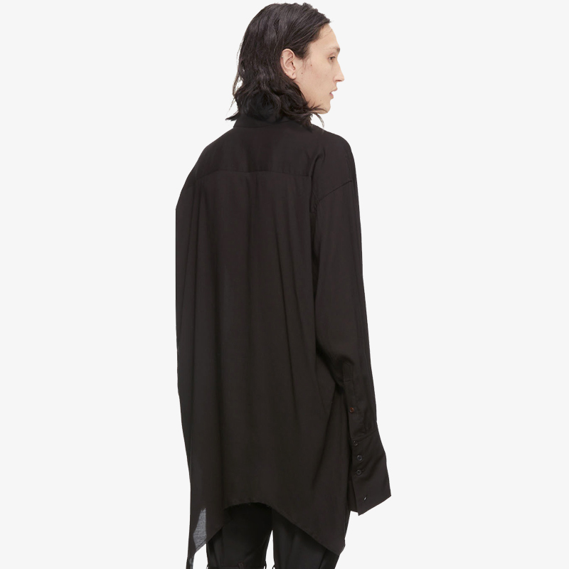 GAOSTUDIOS BLACK LOOSE irregular double-neck large shirt Japanese simple street art men's spring and summer shirt