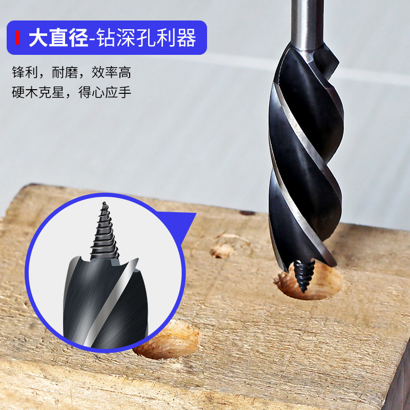 Lengthened woodwork branch Rodrilling four-edged four-edged woodwork drill door lock drawer drilled hole-hole drill-drill hexagonal shank