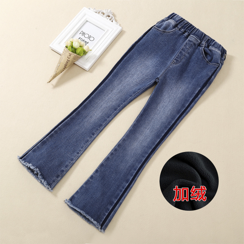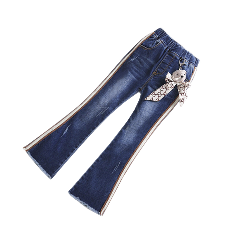 Blue Cartoon Spring Autumn Denim Jeans Pearl Jeans Blue Hairy Side Denim Jeans Letters Denim Jeans Light Blue Small Butterfly Knot Horn Pants Blue Cartoon Autumn Winter Plus Suede Cowboy
