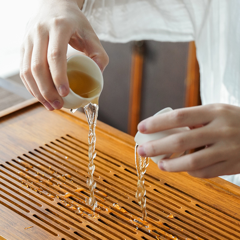 Window body Heavy Bamboo Water Storage Drain Tea Tray (Dual-use) Know-Line-Milk White Suit (5 Cups) Know-The-Black Suit (5 Cups)