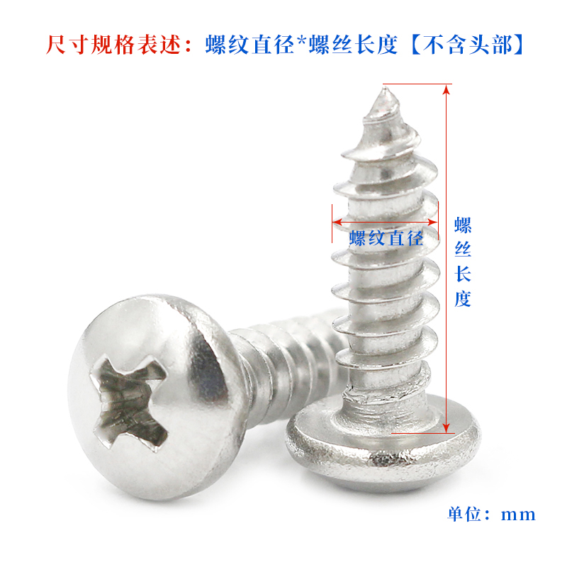 304 stainless steel round head self-tapping screw cross disc head screw cross lengthened screw M1M2M2 5M3 series