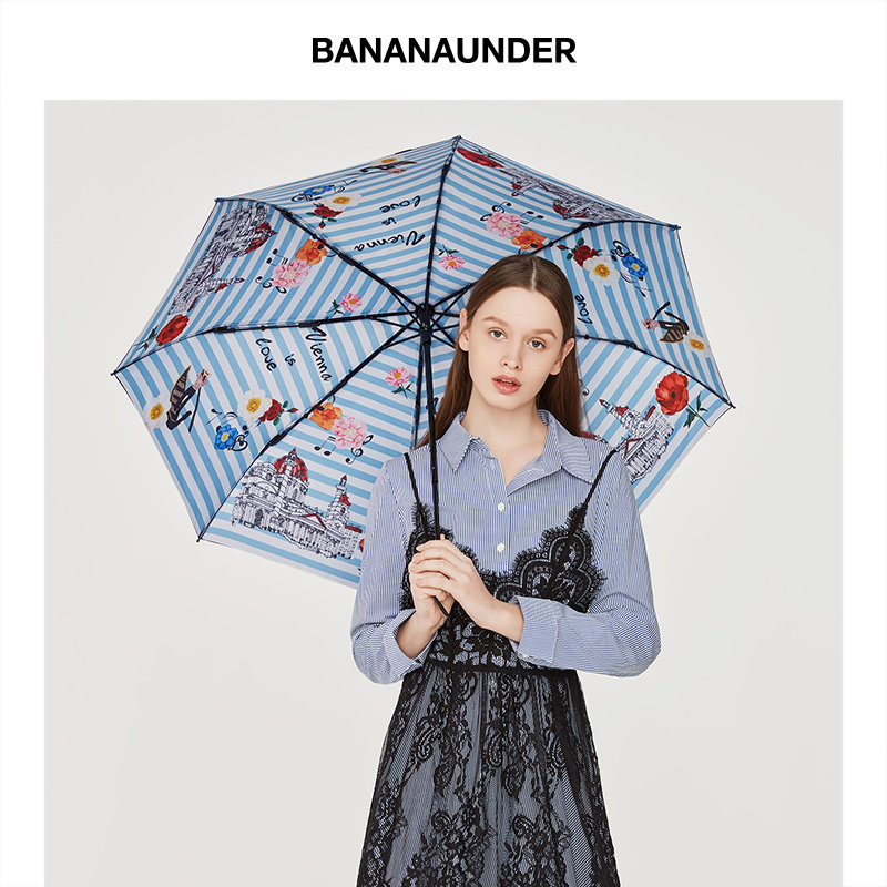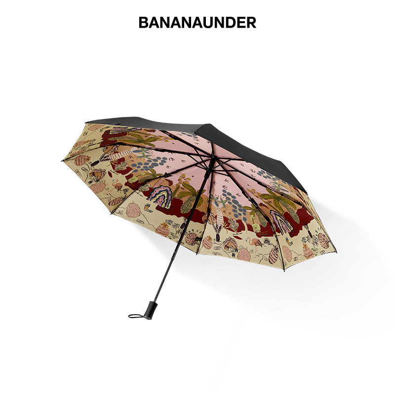 Banana Lower Holiday Series Little Black Umbrella Sunscreen Double Layer Folding Sunny Umbrella Anti UV Shading Umbrella London Coke