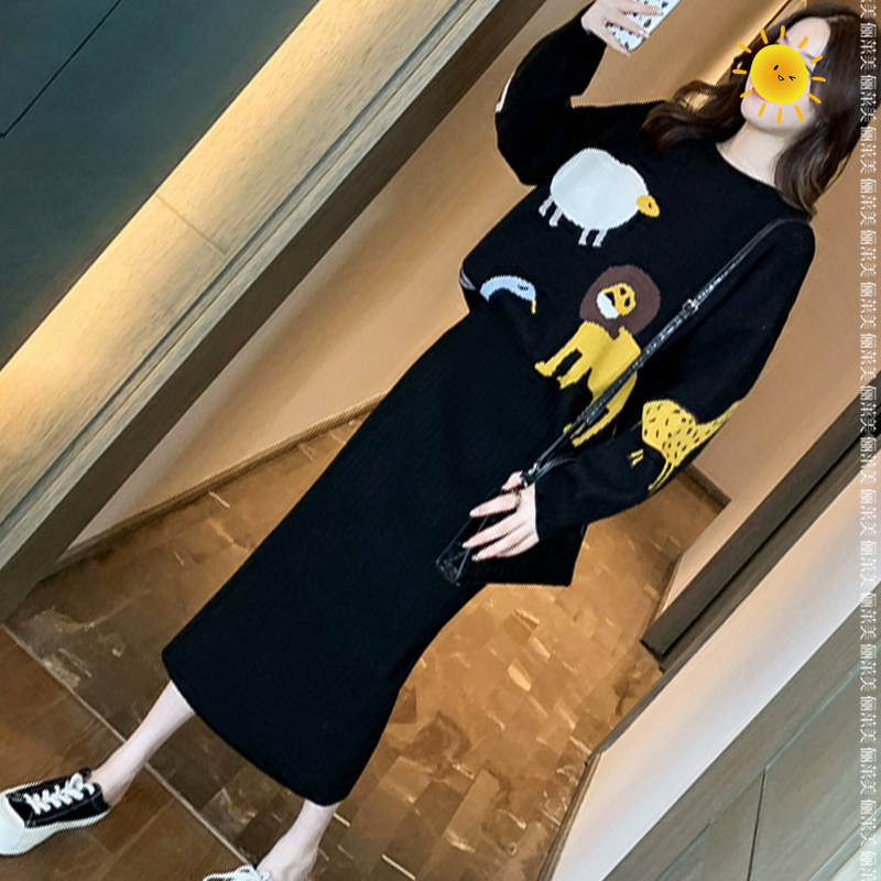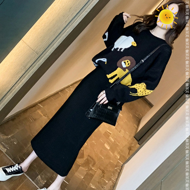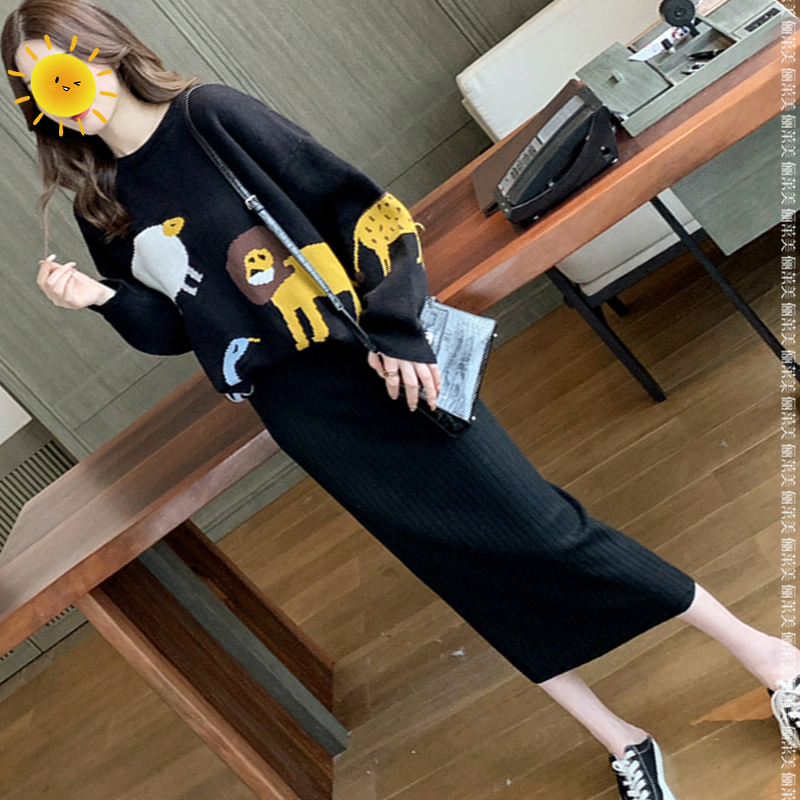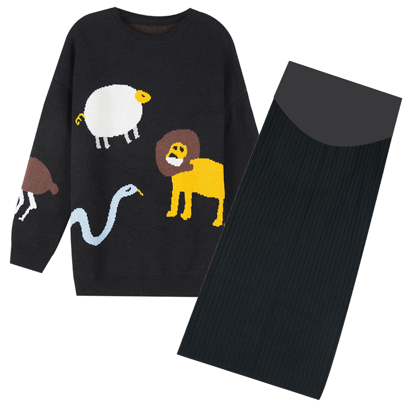 Pregnant Woman Autumn Kits Fashion Cartoon Printed Loose Tide Moms Sweater Women Autumn Winter Clothing Knitted Tobellied Dress Two Sets-Taobao