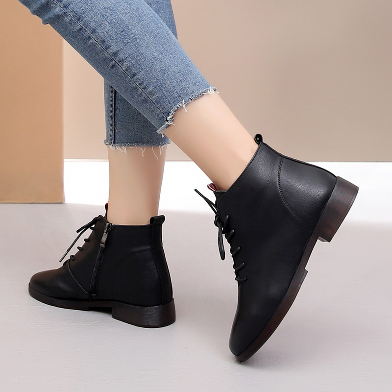 Short Boots Woman Autumn Winter 2020 New Korean Version Flat Bottom Single Boots Women Casual Moms Shoes Genuine Leather Women Shoes 100 Hitch Boots