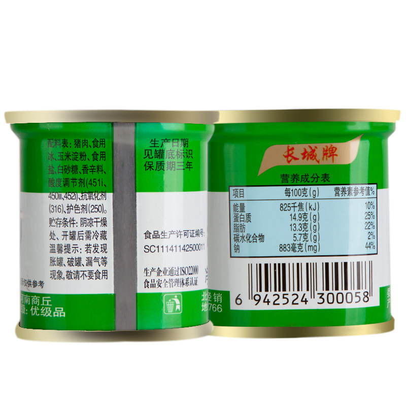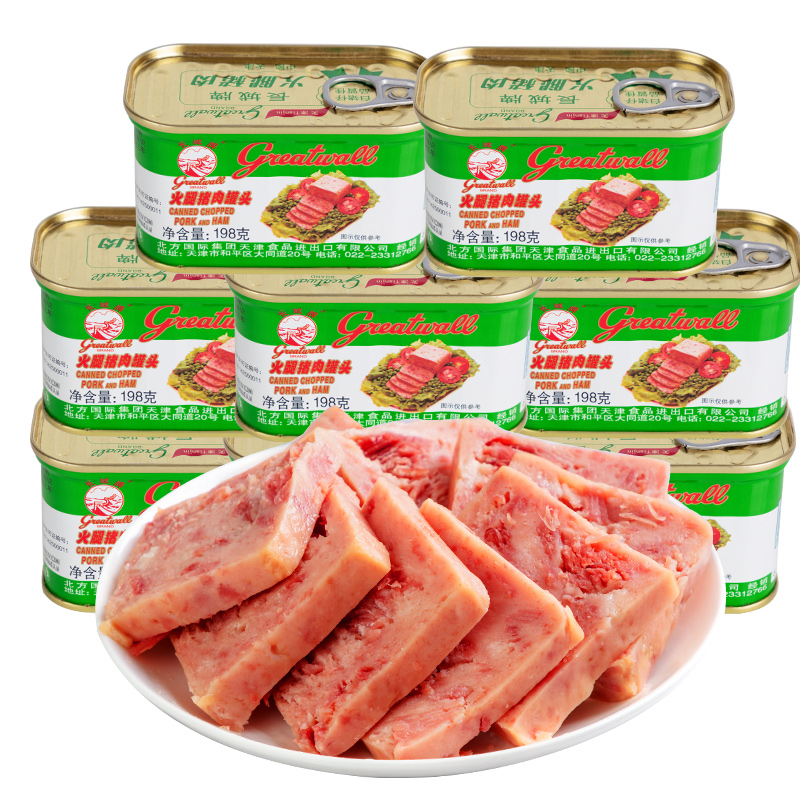 Great Wall brand small white pig luncheon meat canned 198g*8 canned pork ham ready-to-eat meal instant hot pot ingredients