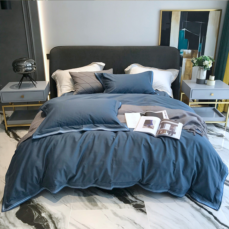 Nordic style 80 Egyptian long-staple cotton four-piece set of pure cotton light luxury sanding four seasons solid color high-end bedding